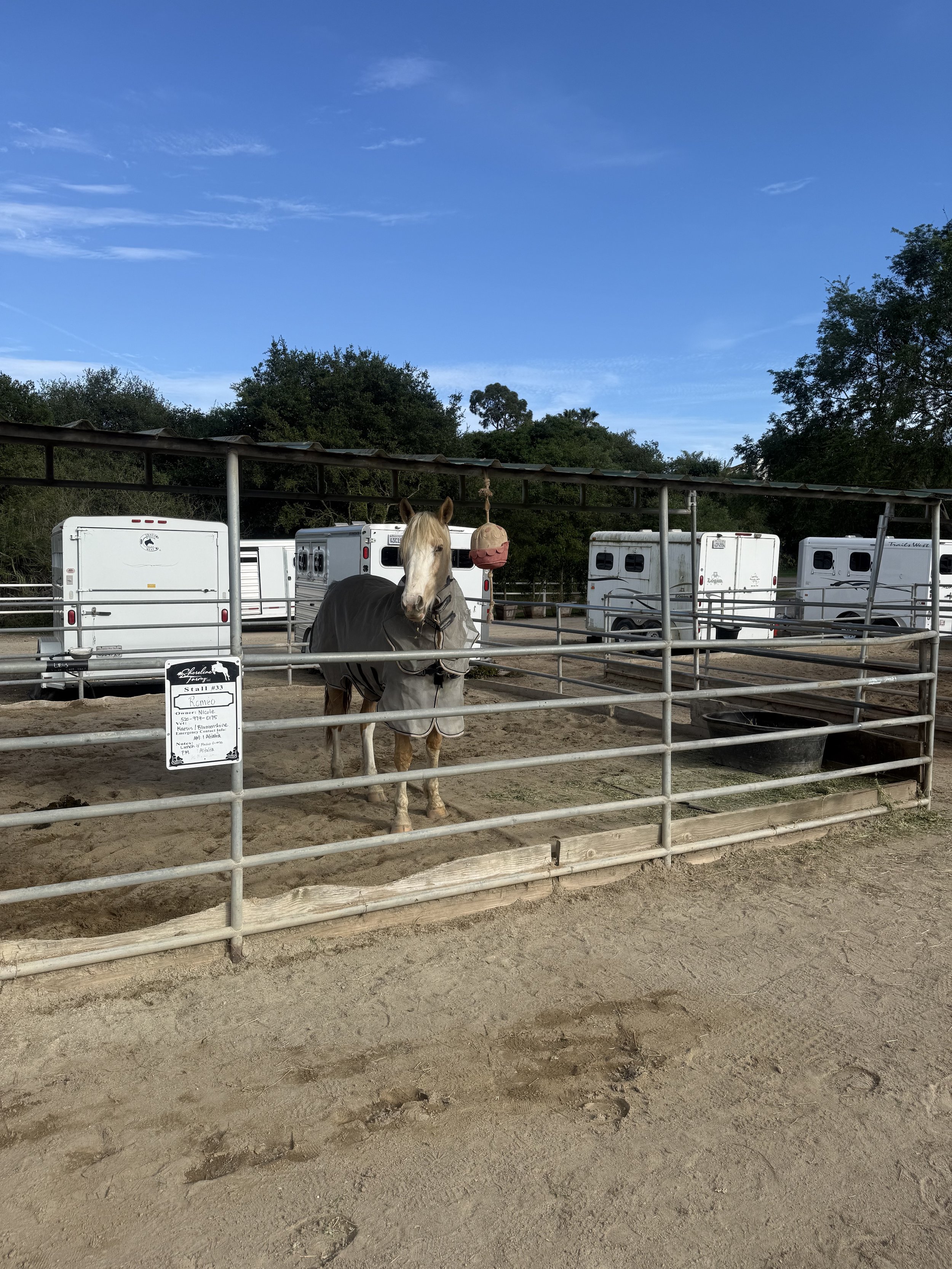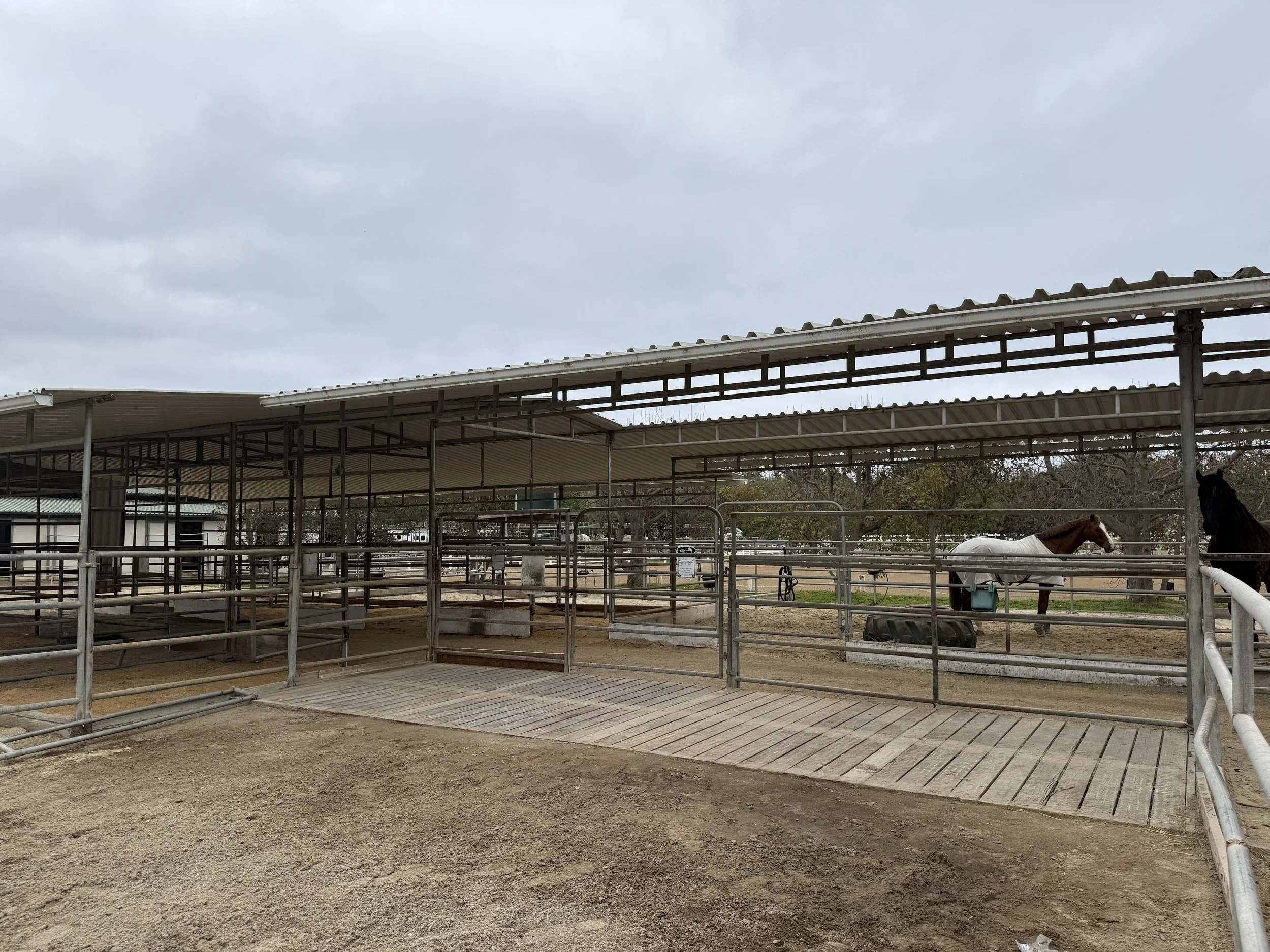 We offer 24×24 half covered paddocks that offer a raised covered platform. amenities include: Cleaning twice daily, Hay three times daily, daily grain service, grass turn out twice a week and blanketing daily. Common Area tack room. Private tack lockers available at extra cost.